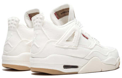 The Levi's x Air Jordan 4 Retro 'White Denim' is a sleek and stylish take on the classic silhouette. The upper and midsole are dressed in white denim, with Levi's signature red tab and the Jumpman logo on the tongue tag. A gum rubber outsole complements the all-white build. This shoe is perfect for anyone who wants to show off their American pride in style.