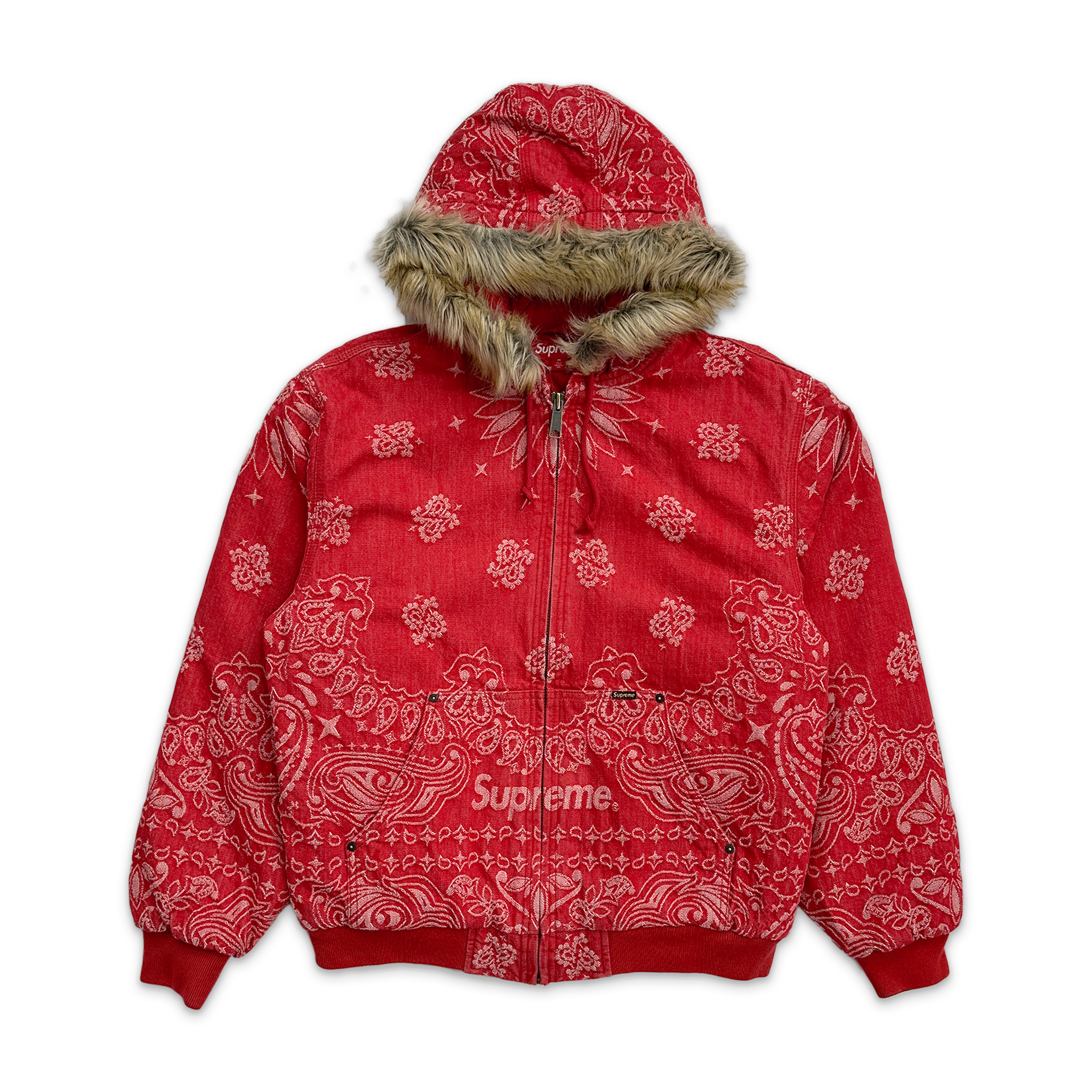 Supreme Bandana Jacquard Denim Hooded Jacket "Red"