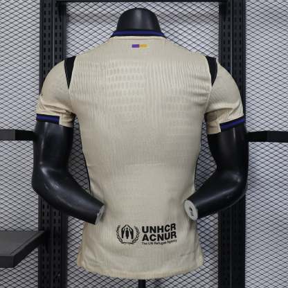 Our shipping policy guarantees the fastest delivery times, ensuring you receive your jerseys promptly. Crafted from soft, comfortable cotton material. Each piece features impeccable patches and stitching, promising durability and a luxurious feel, perfect for the dedicated fan. Maintain its pristine condition with our hand-wash recommendation, keeping the letters and numbers intact. Embrace quality, comfort, and style with the Barcelona 2025/26 Away Shirt.