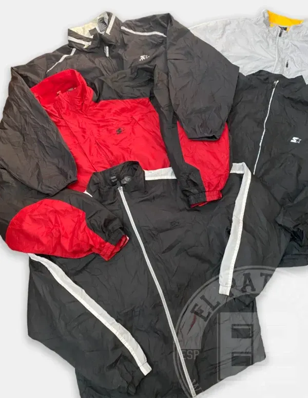 Chaquetas Starter ligeras tipo trackjacket, estilo cortavientos imperbeable. Variedad de colores donde predominan los colores básicos, como el rojo, negro gris…