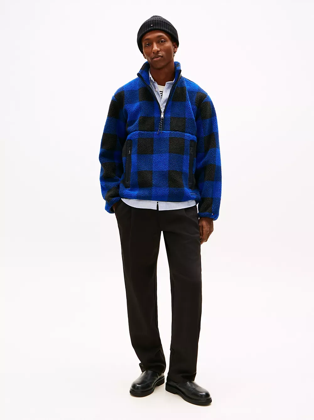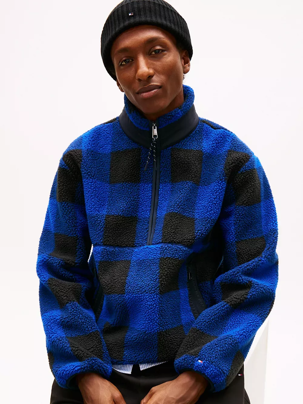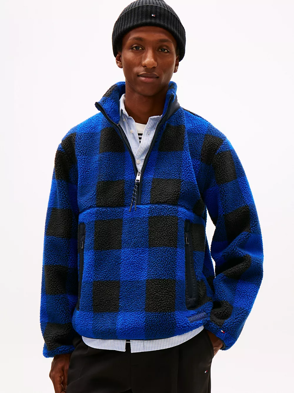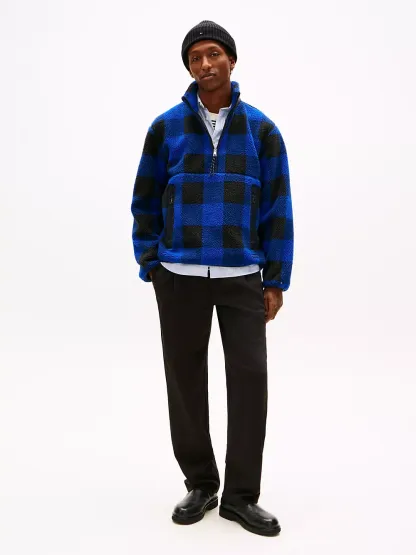Check Teddy Fleece Quarter-Zip Jacket