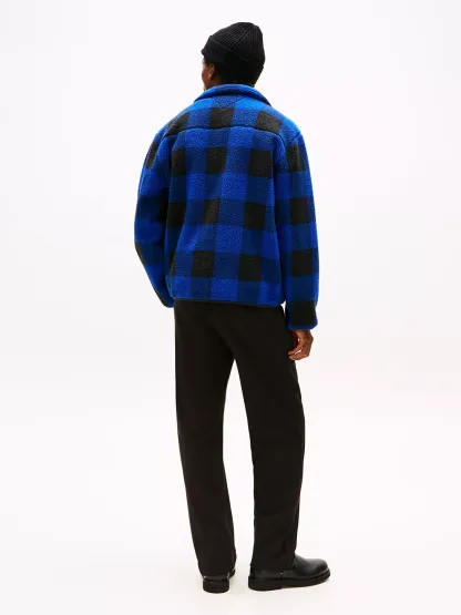 Tommy Hilfiger men's jacket. Add a layer of warmth with this cozy teddy fleece zip jacket, designed in a buffalo check print for on-point seasonal dressing.