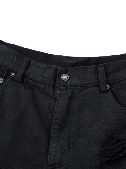 • Design Elements: Ripped details, camouflage lining, frayed hem