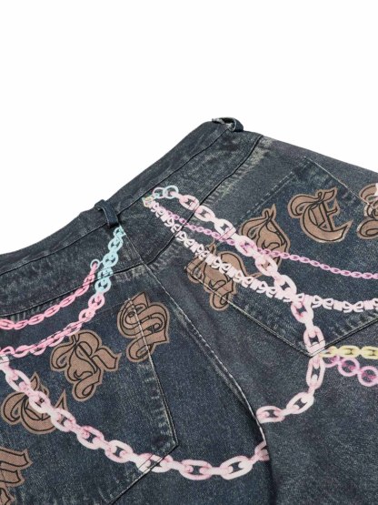 • Design Elements: Unique Chain Patterns, Fun Charms, Fashionable Denim Look