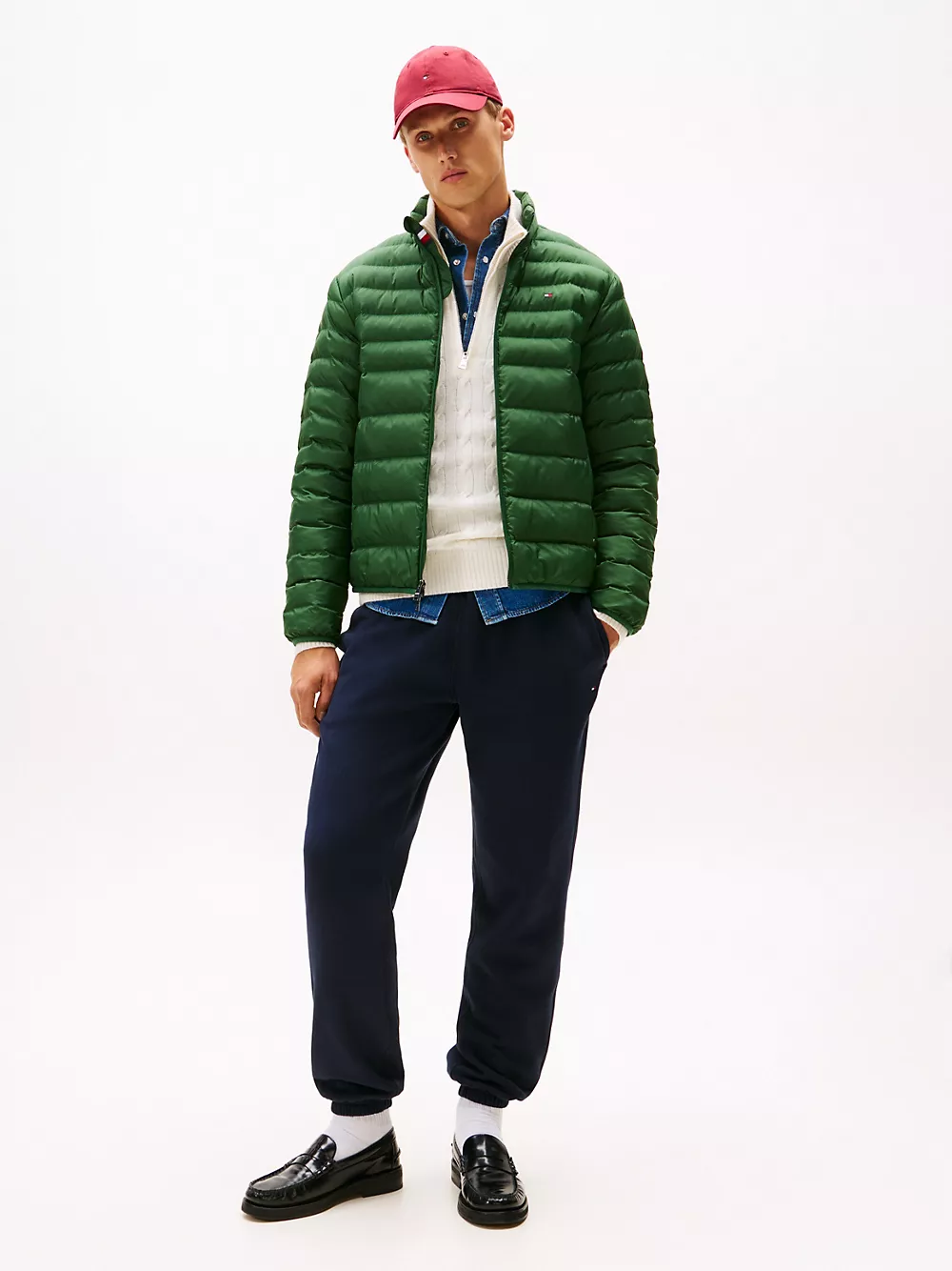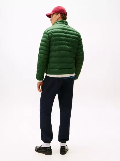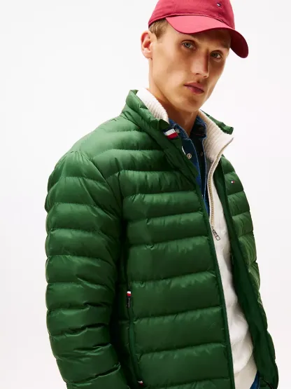 Tommy Hilfiger men's jacket. Ideal for travel, this puffer jacket folds down to a fraction of its size and easily stores in the internal security zip pocket. Made from lightweight fabric and toasty insulation, it's ready for whatever the weather report is dishing out.