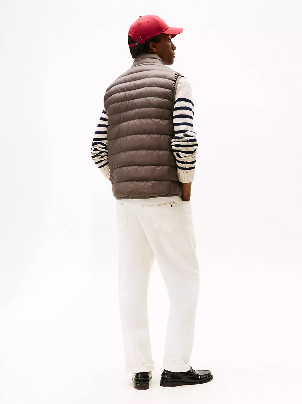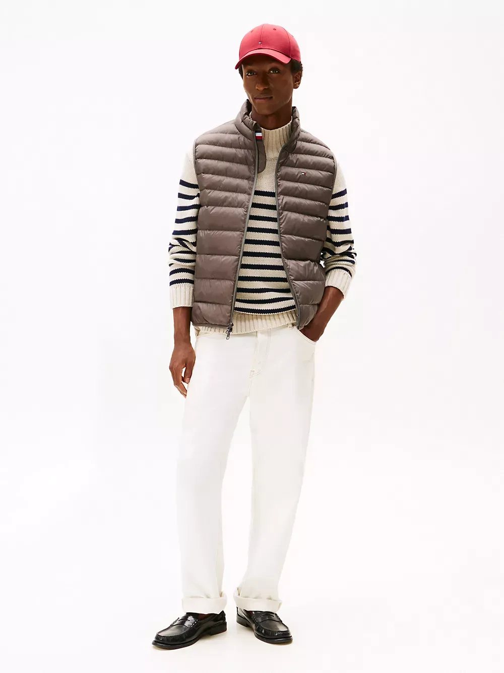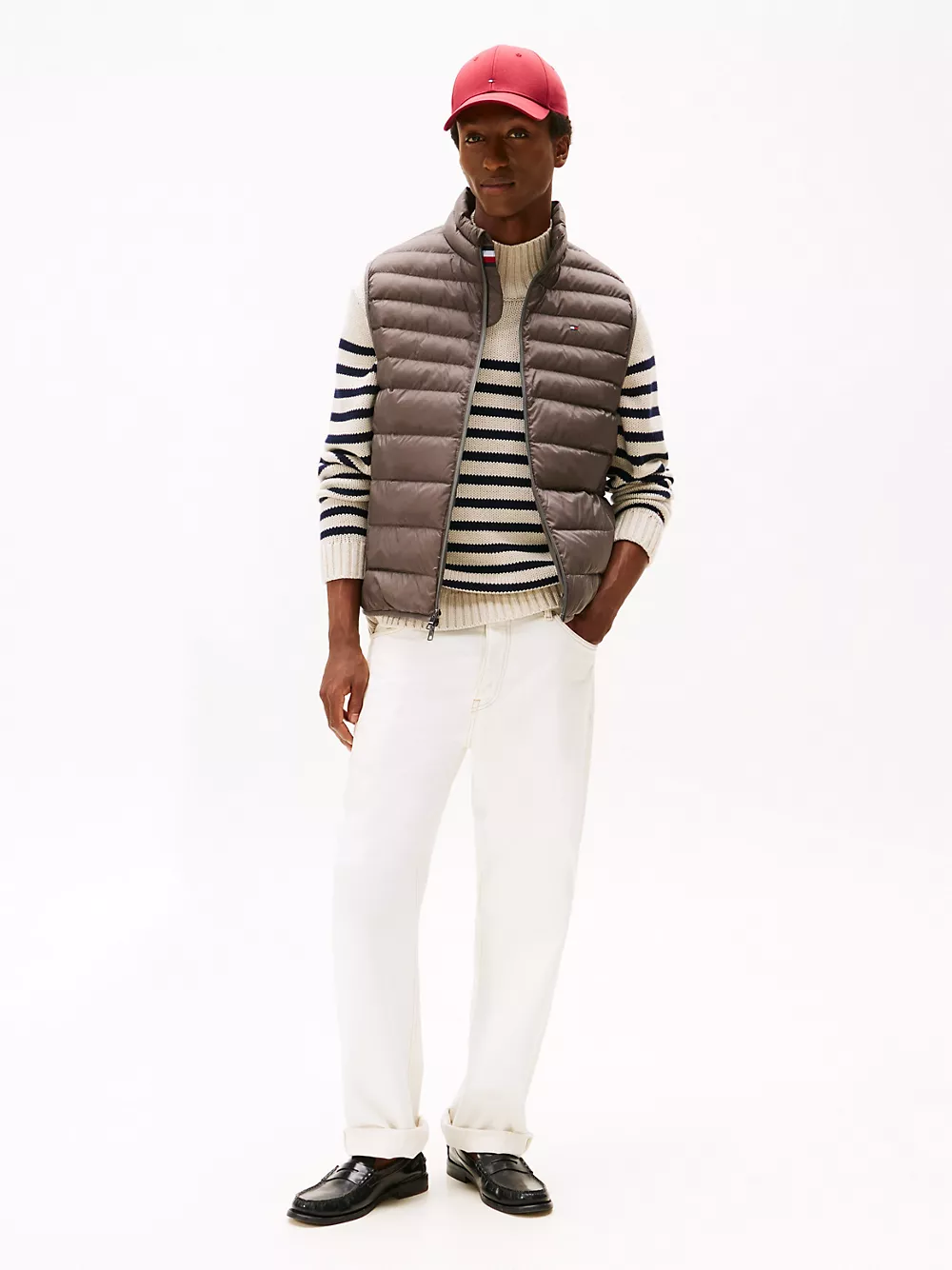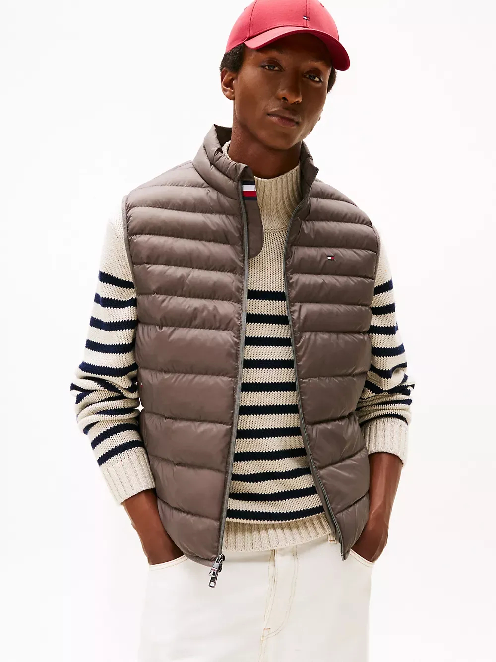 Tommy Hilfiger men's vest. Ideal for travel, this puffer vest folds down to a fraction of its size and easily stores in the internal security zip pocket. Made from lightweight fabric and toasty insulation, it's ready for whatever the weather report is dishing out.