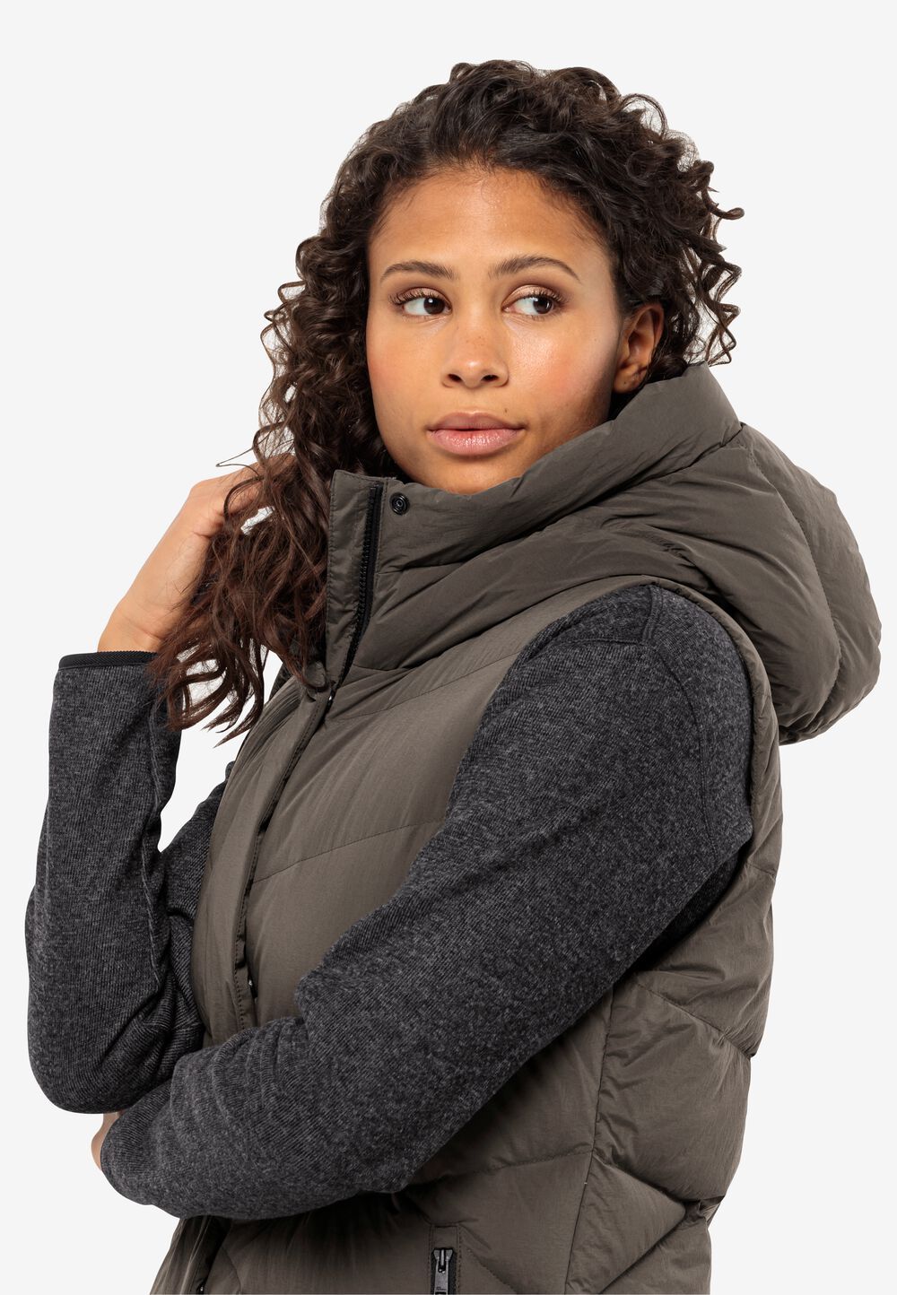 The MARIENPLATZ VEST can be styled with a wide range of everyday outfits and has an extra long cut. The RDS-certified down fill keeps your core warm on cold days and the gilet also protects the sensitive waist area. The breathable TEXASHIELD face fabric is windproof and water repellent - welcome attributes in unpleasant winter weather. The high collar and hood provide additional protection and cosiness.