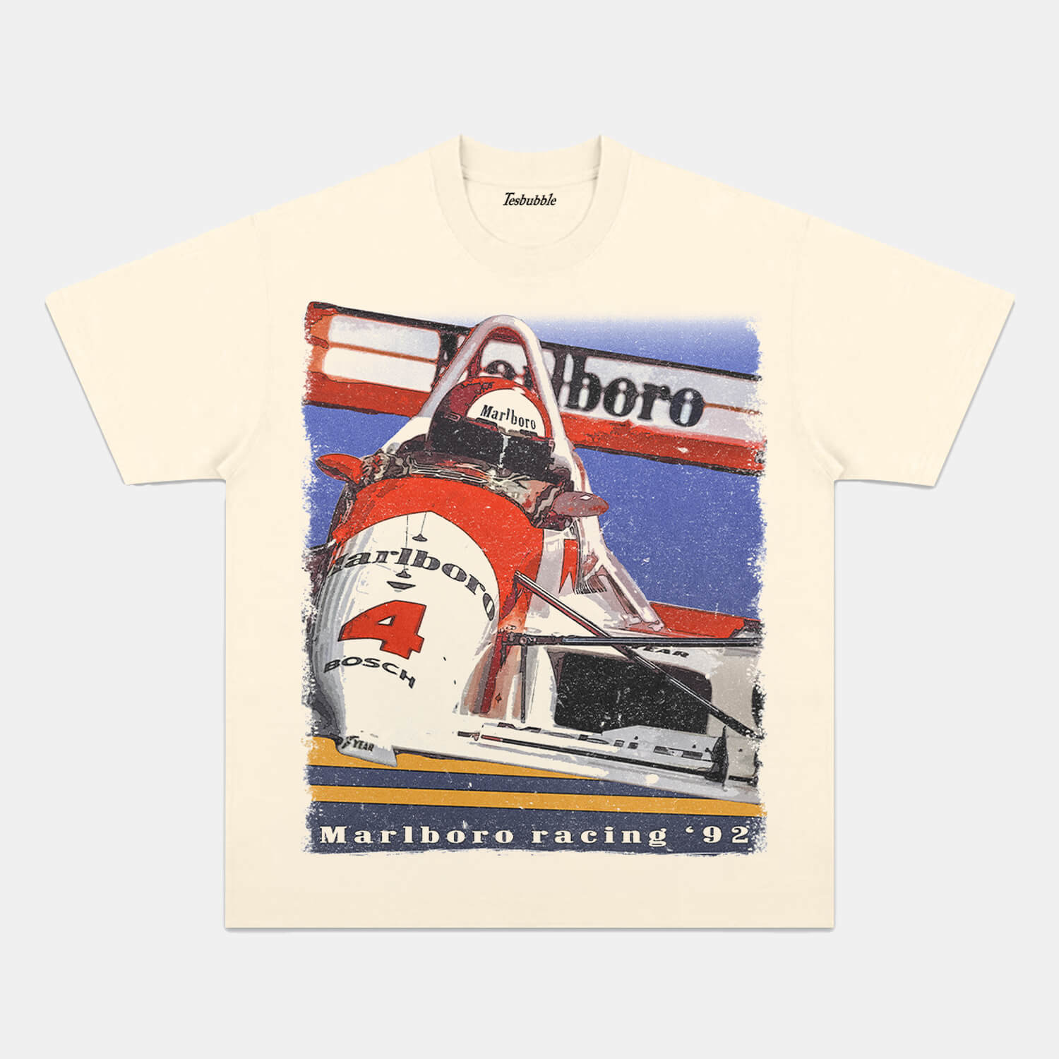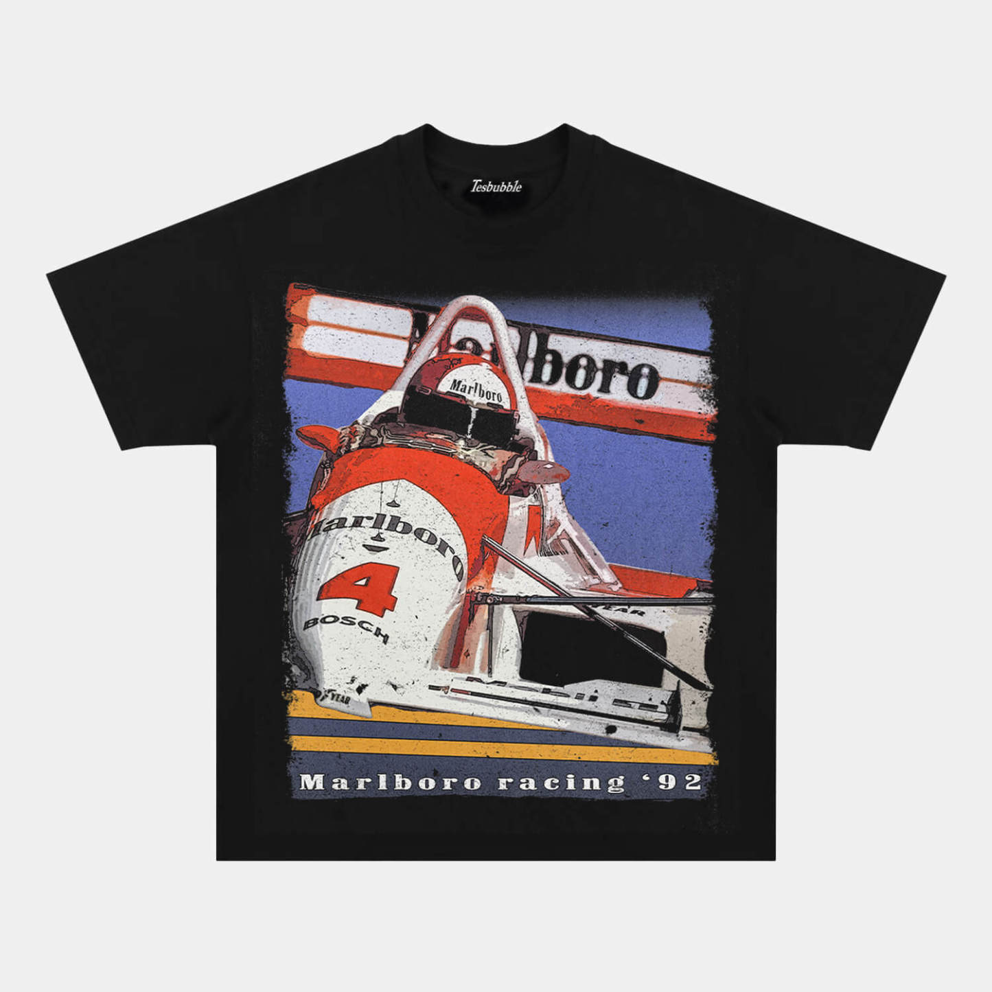 🏁 Marlboro Racing Vintage '92 Tee: Race into retro style with our Marlboro Racing '92 Tee. Crafted from heavyweight fabric. it's as bold as the roaring engines of '92. Featuring an iconic racing design. this tee revs up your street cred. Made with super max heavyweight fabric. it's a winner for comfort and style.