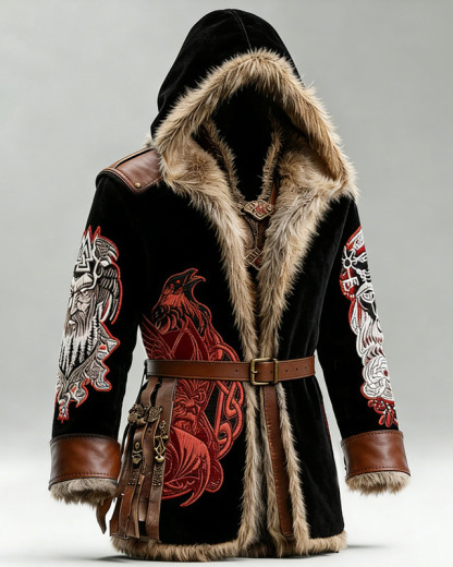 Men's winter Nordic Viking style tribal totem 3D embroidery warm and thick coat 7362