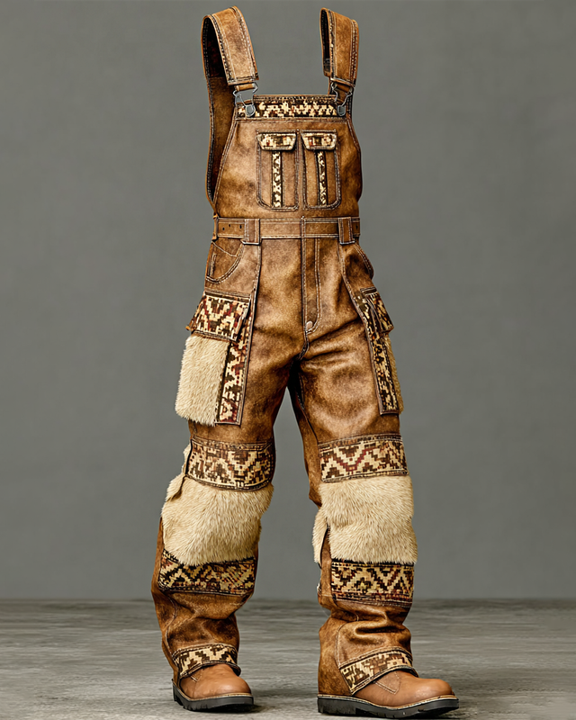 Men's Fall/Winter Western-Style Leather Suspenders Pants 7599