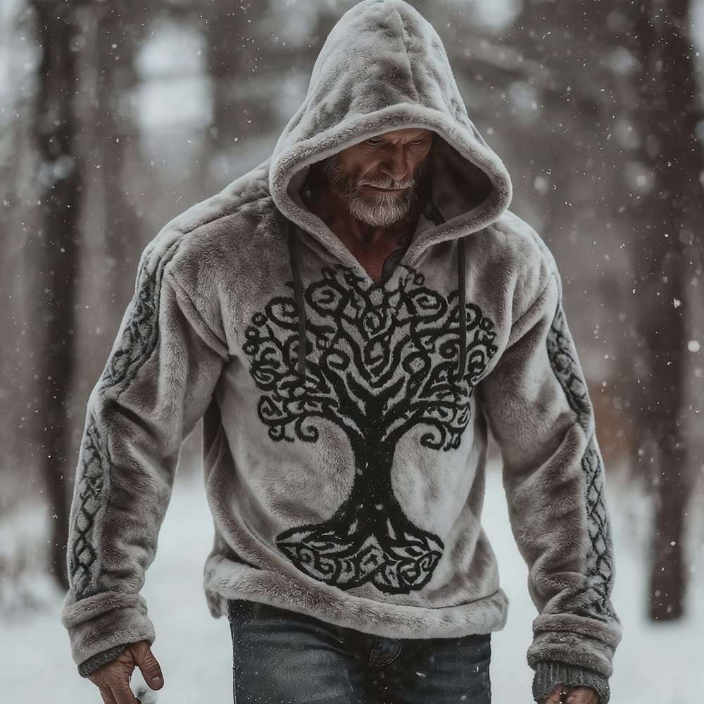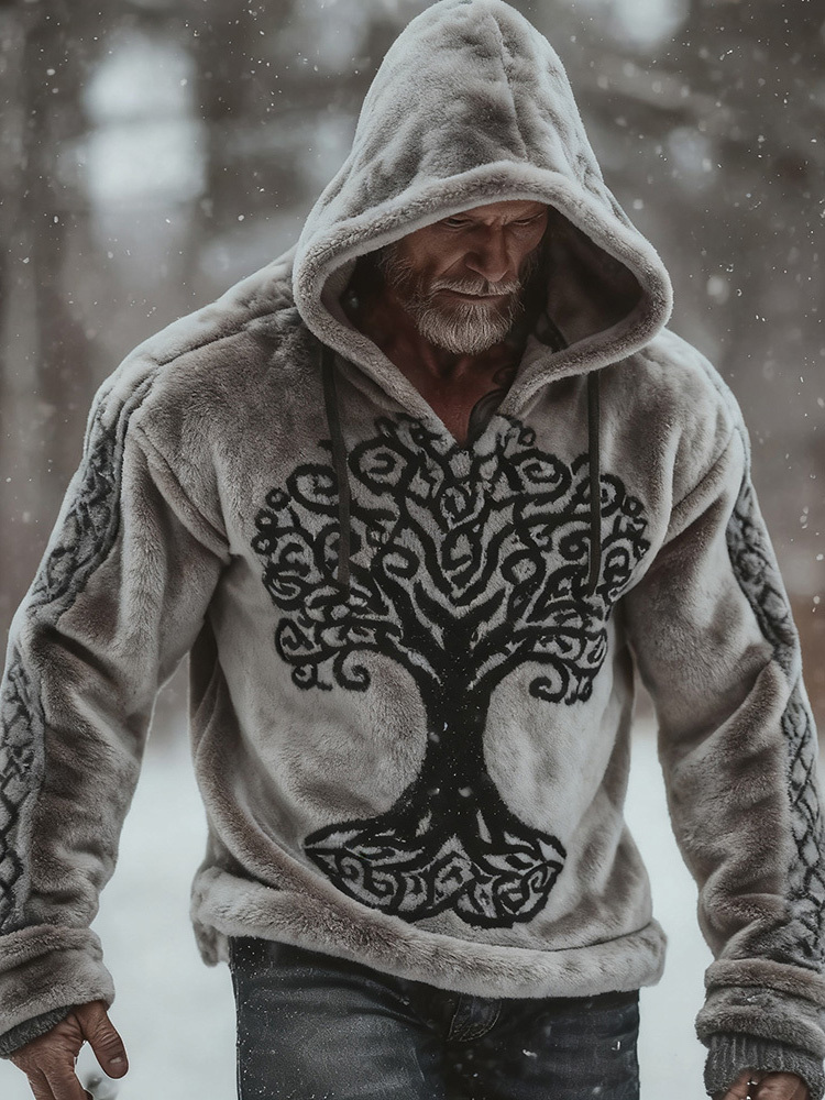 Men's Viking Celtic Tree Of Life Art Cozy Plush Hoodie 4ae4