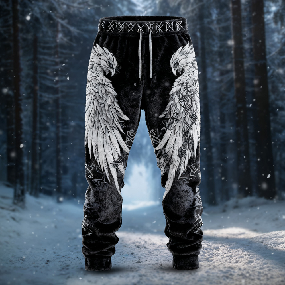 Men's Viking Inspired Eagle Wings Art Cozy Plush Sweatpants 46e1