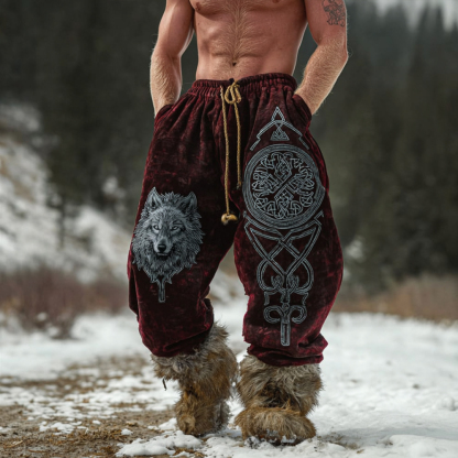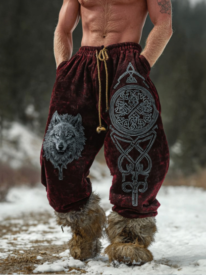 Men's Viking Wolf Totem Celtic Knot Red Fleece Sweatpants 9b8a