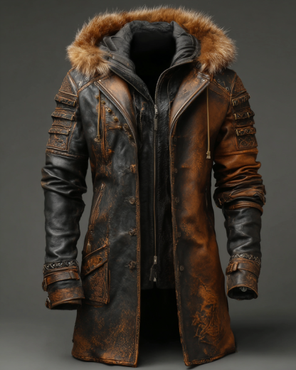 Men's Western Style Color Block Leather Jacket 6985