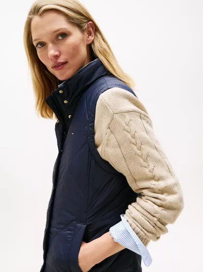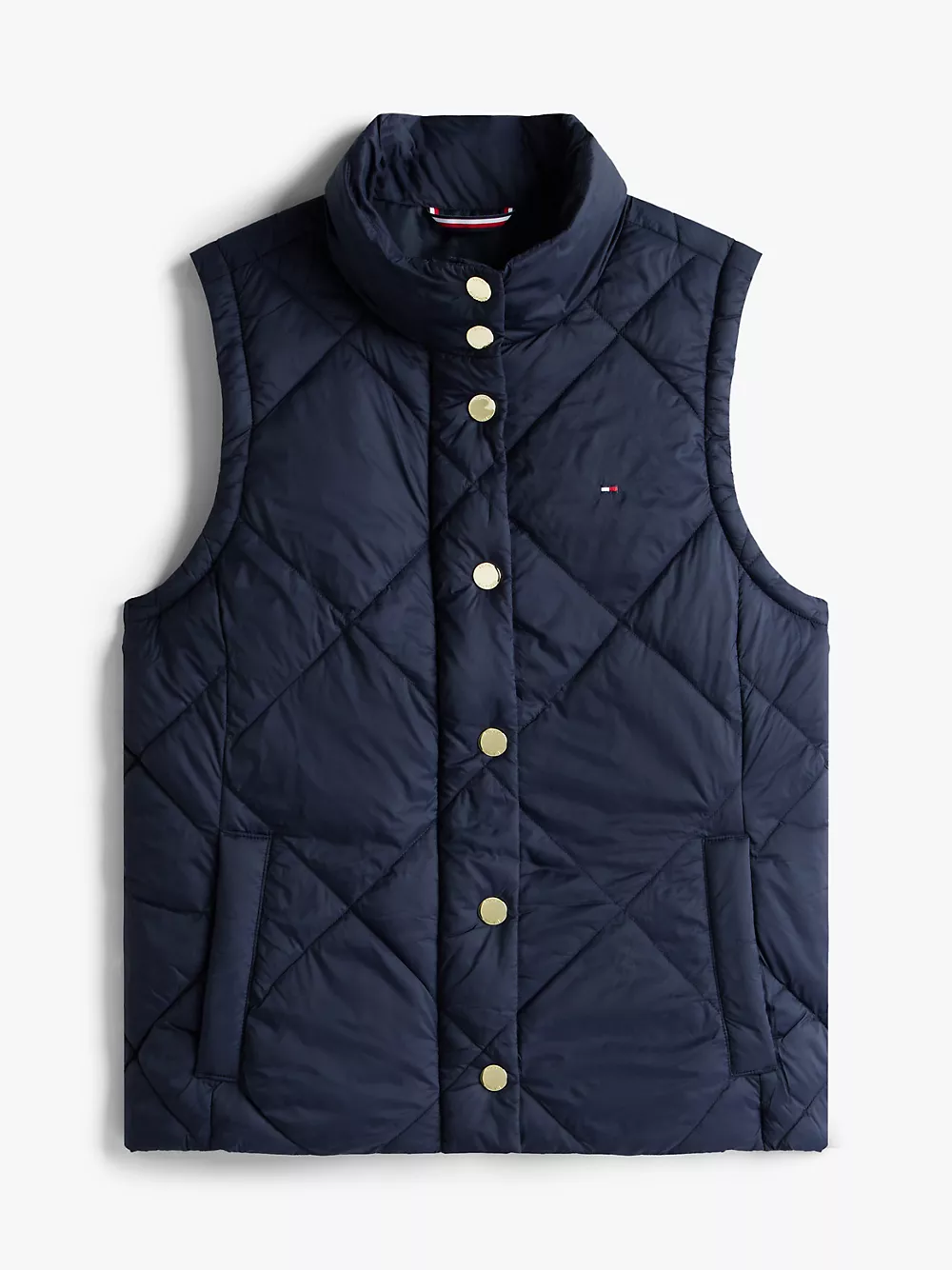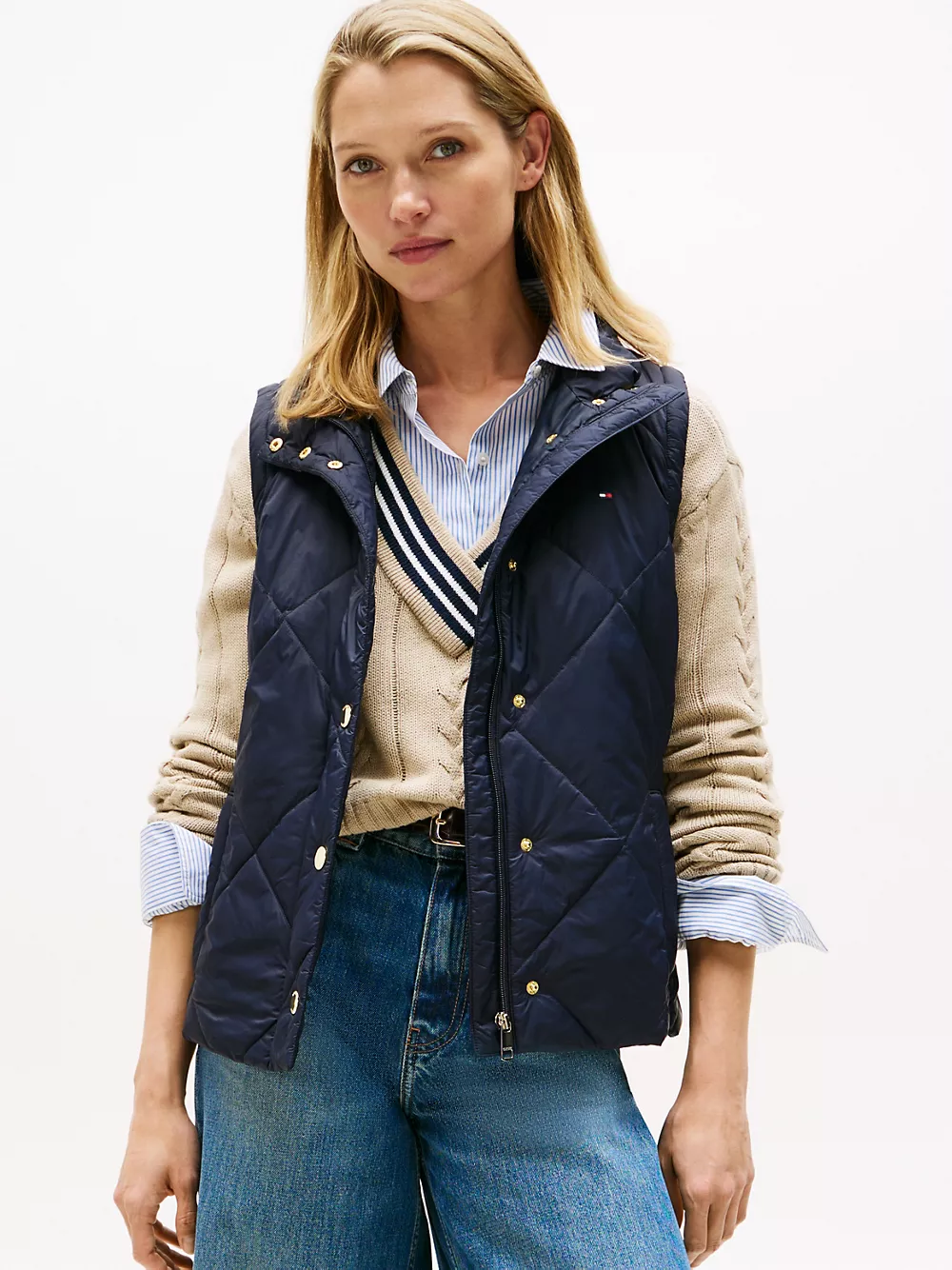 Tommy Hilfiger women's vest. Our quilted vest is made to withstand the elements. It's designed with a quilted shell and core-warming thermal padded insulation to help you stay warm and comfortable.
