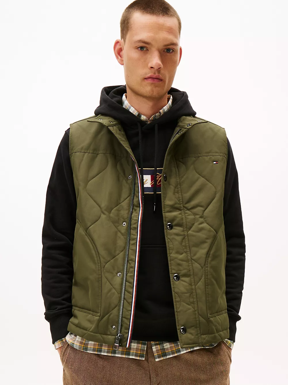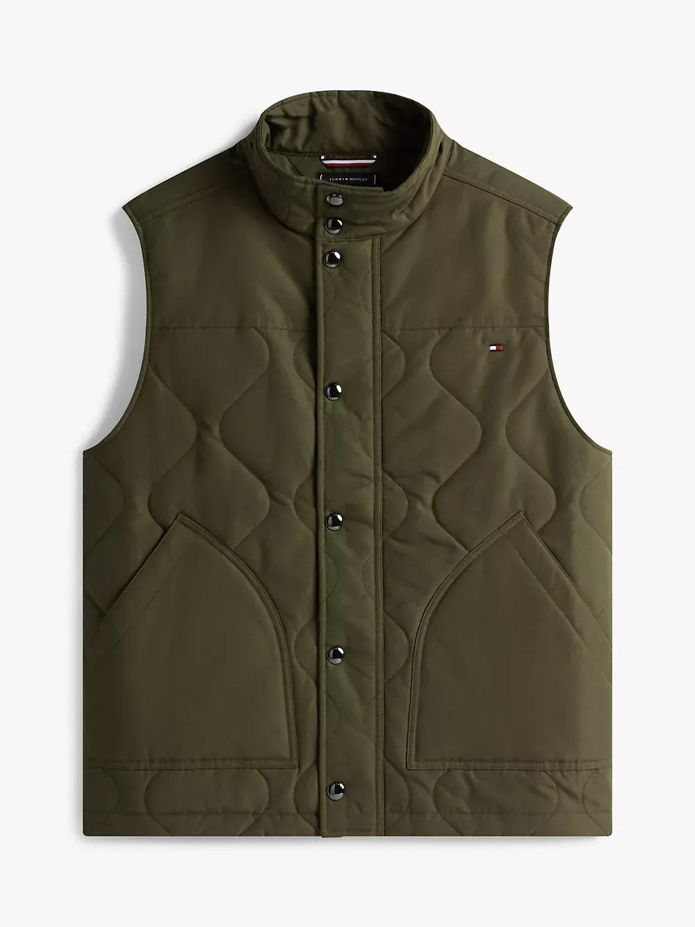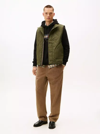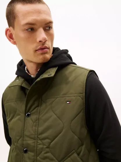 Tommy Hilfiger men's vest. Tackle fickle weather in our quilted field vest. Designed with side vents and a standing collar, this outerwear layer keeps you warm, thanks to the lightweight thermal insulation.
