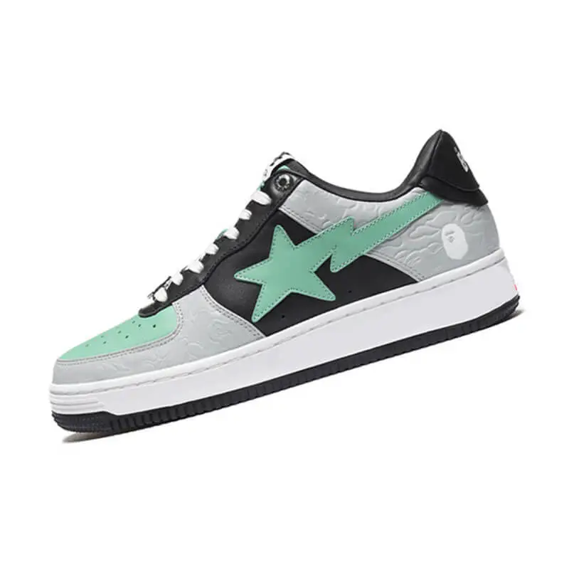 One of the most popular BAPE Shoes in grey silver is the Bape SK8 Sta. These sneakers feature a white leather upper with silver and grey accents. The sneakers also come with a set of BAPE shoelaces.