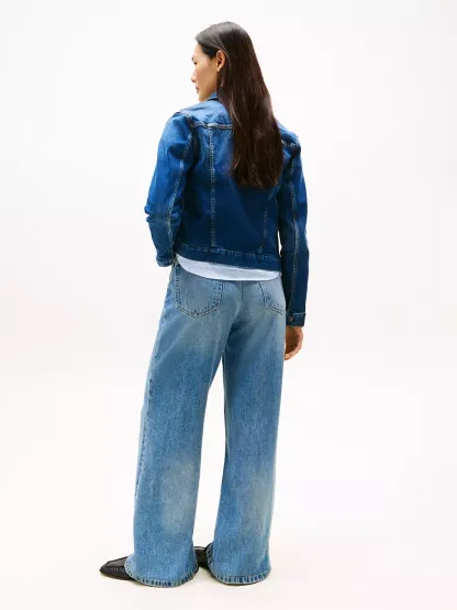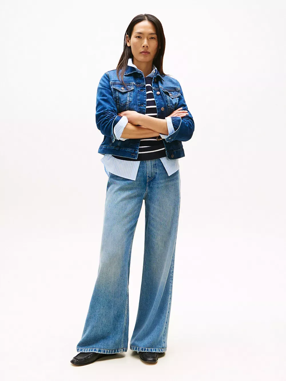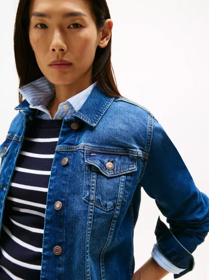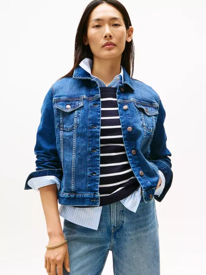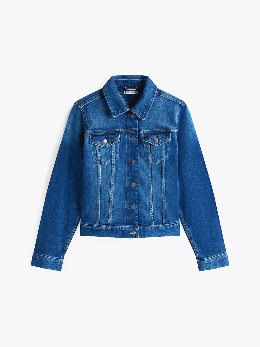 Tommy Hilfiger women's jacket. This trim-fit denim jacket adds a touch of authentic Americana to any outfit. Even better, it's made from premium cotton with a hint of stretch for comfort.