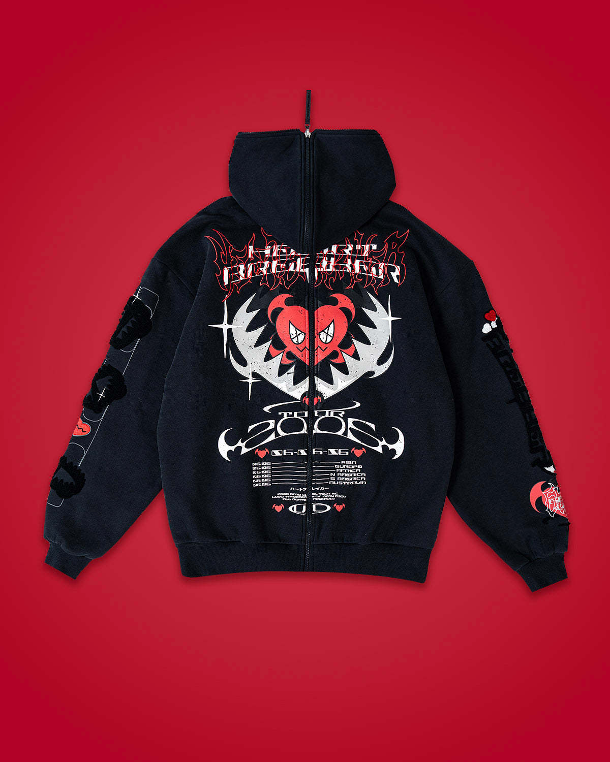 - all over?screen printed,?embroidered?and soft tufted?graphics?