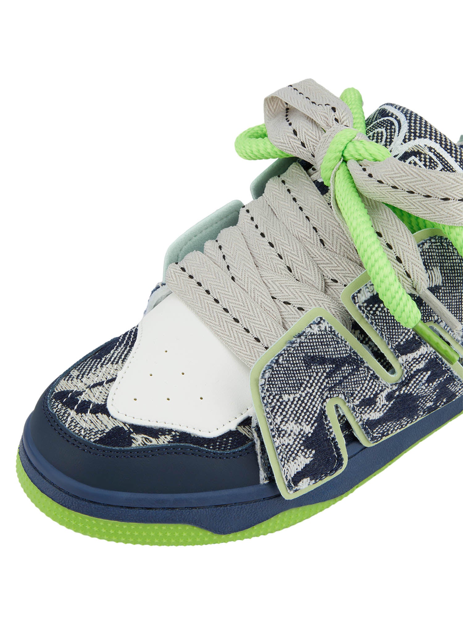• Detail Features: Lace-Up Closure, Colorful Paisley Pattern, Neon Green Accents, Padded Insole