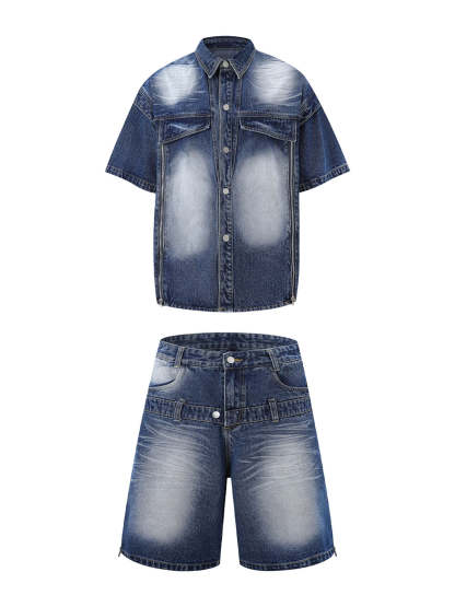 • Design Elements: Faded wash effect, button-down front, classic denim look