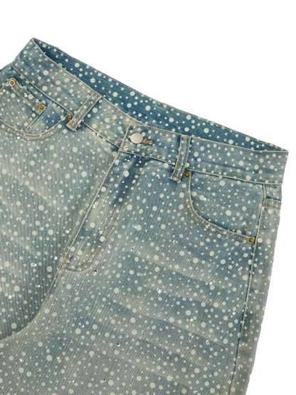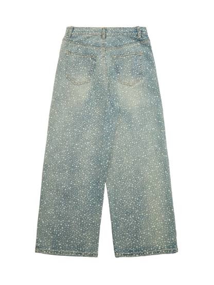 Ogulclon Ink Splashed Hotfix Rhinestone Baggy Jeans - 2306