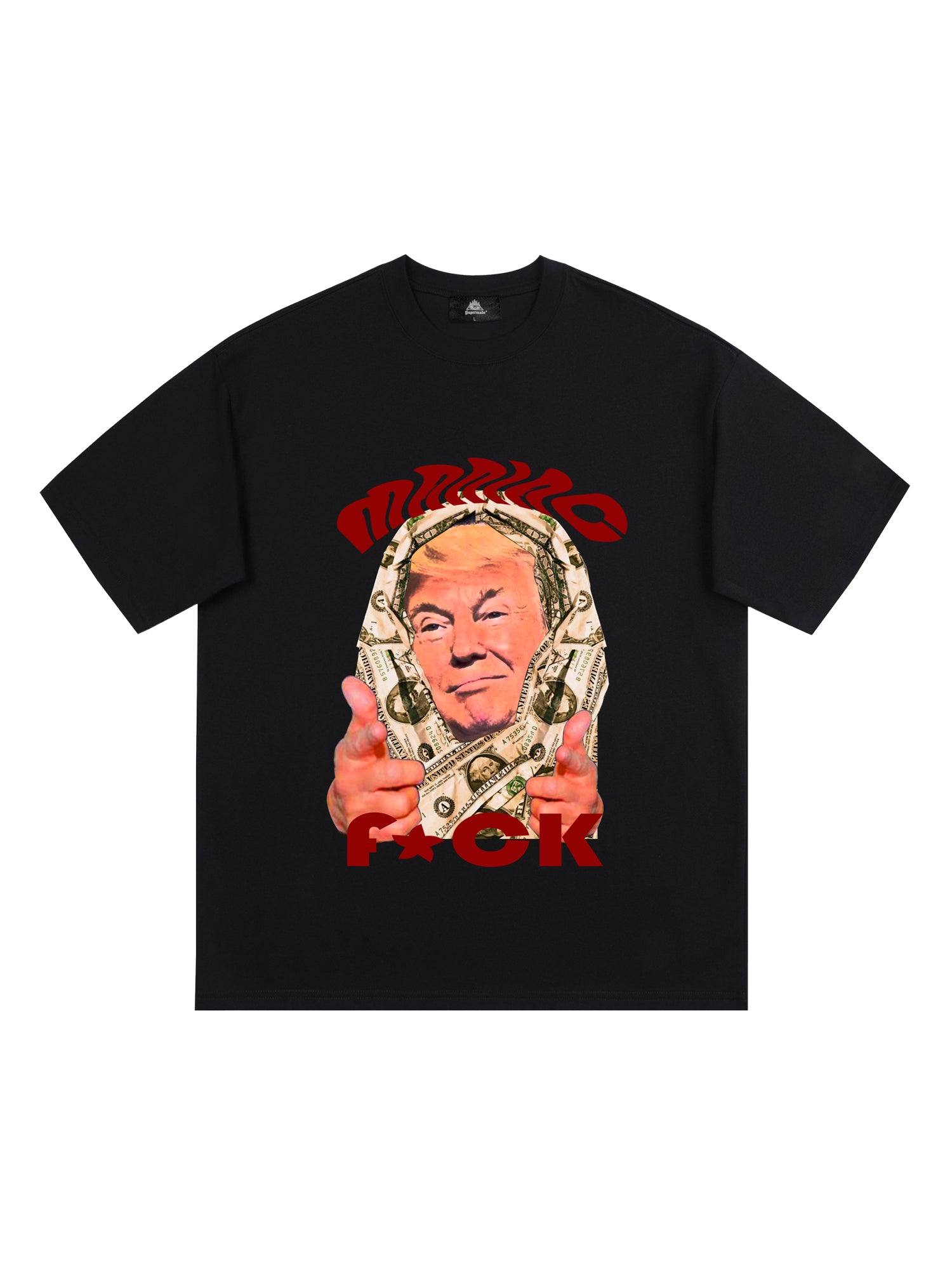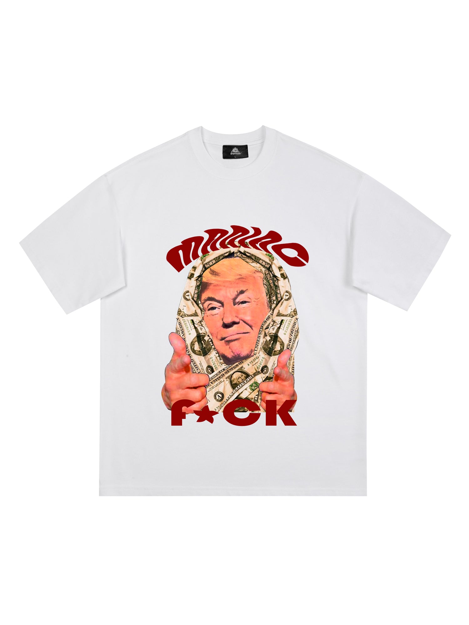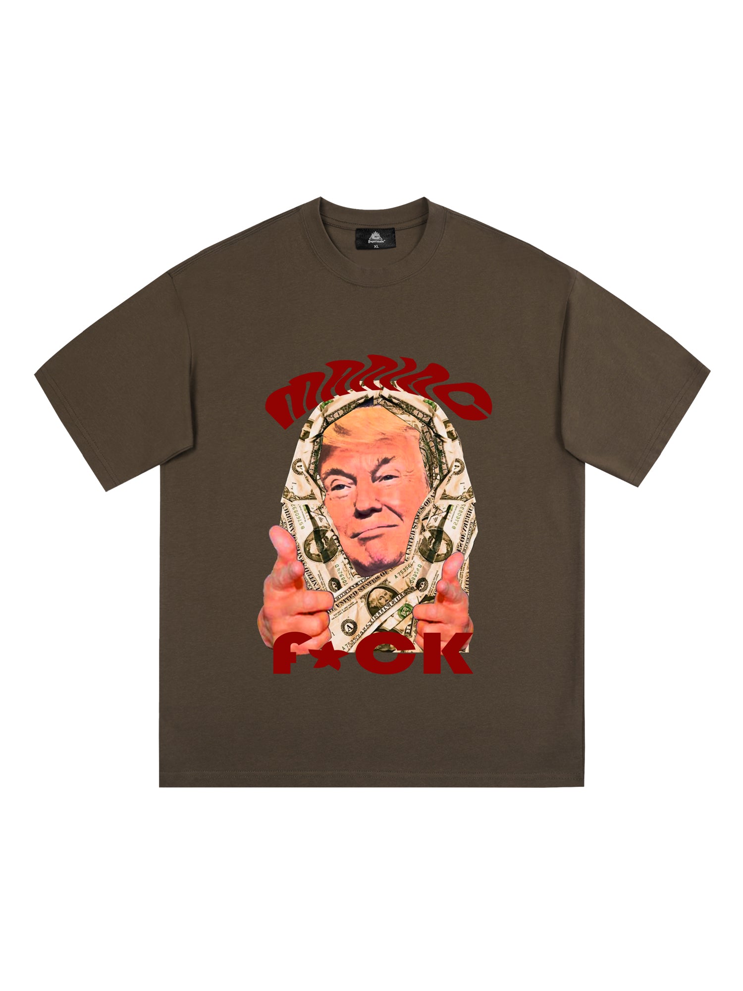 • Design Elements: Bold Character Print, Slogan Text