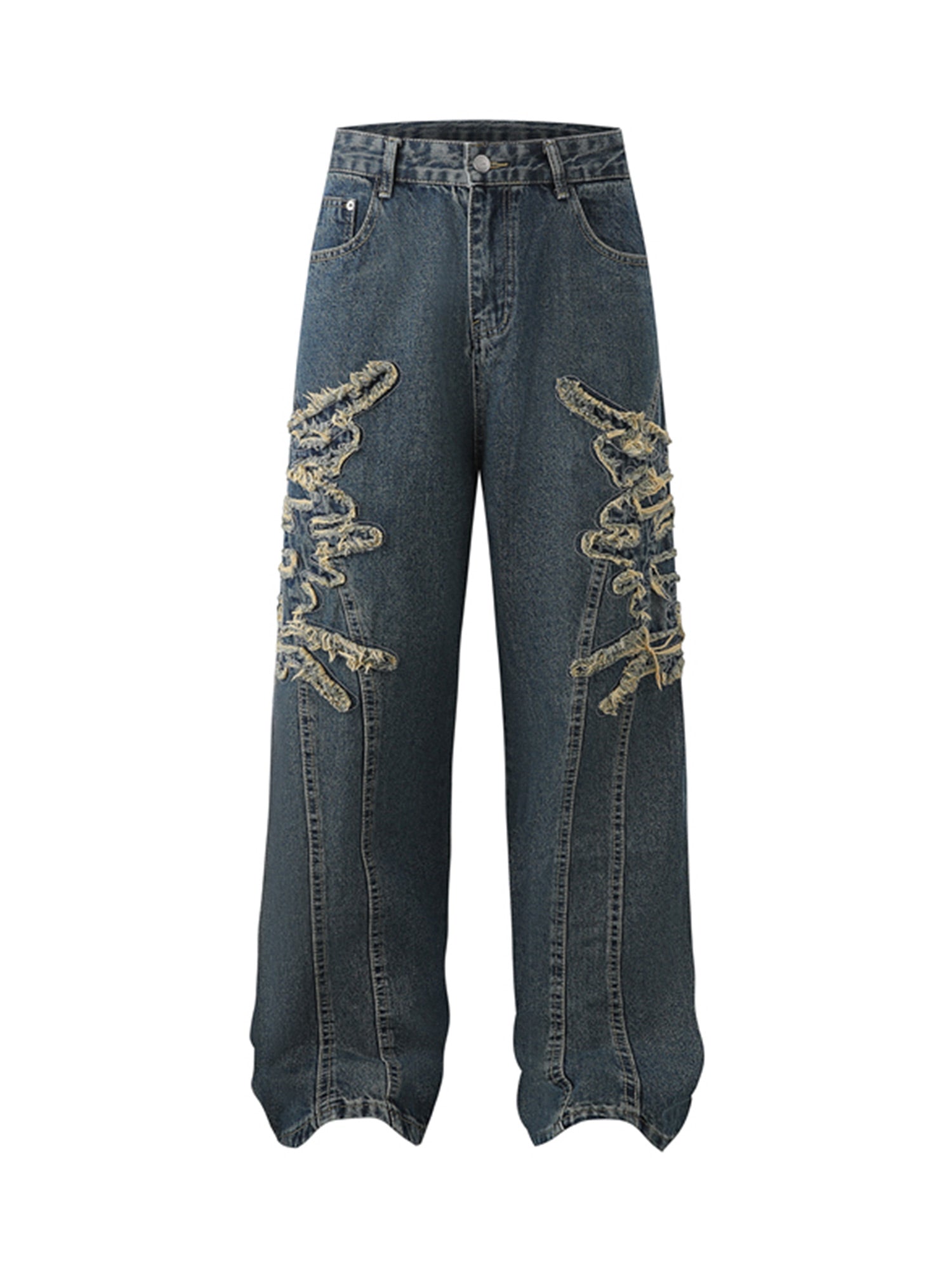 • Detail Features: Floral Embroidery, Wide Leg, High Waist, Frayed Hem