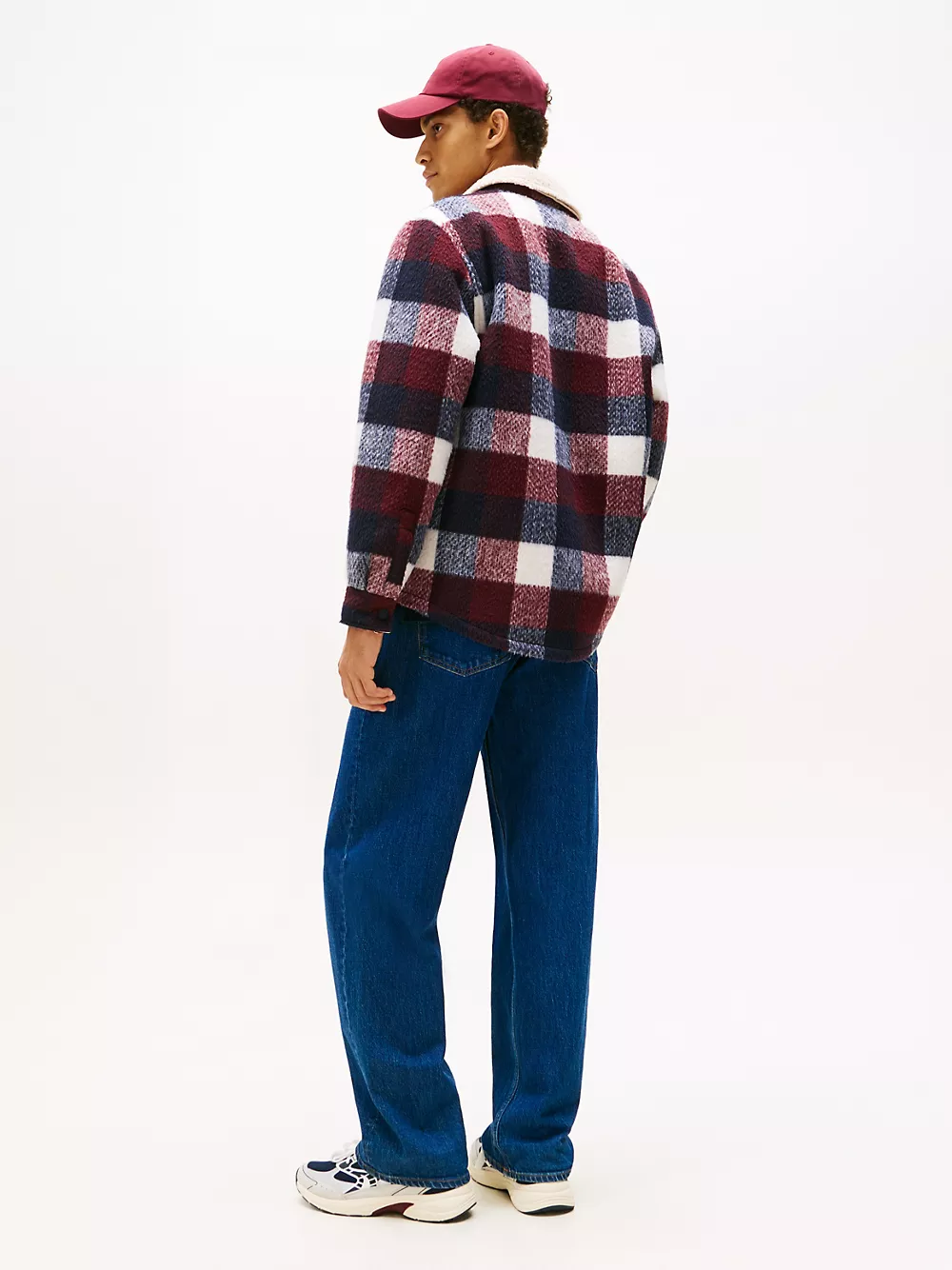 Tommy Hilfiger men's shirt. Add an extra layer of warmth with this teddy-collar overshirt, designed in an oversized fit from softly textured buffalo check flannel. Part of our Tommy Jeans collection.