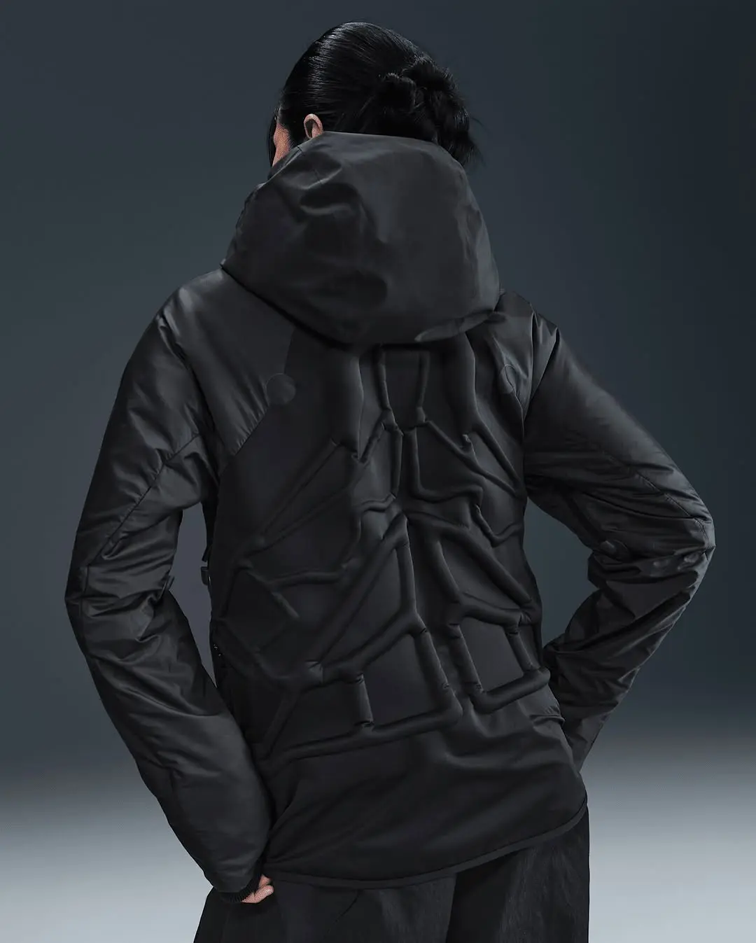 This jacket locks in insulation with manual and electric hand pumps for a customised fit. The insulation in the arms and powder skirt keeps out the cold, while the removable hood doubles as a bag for added convenience.