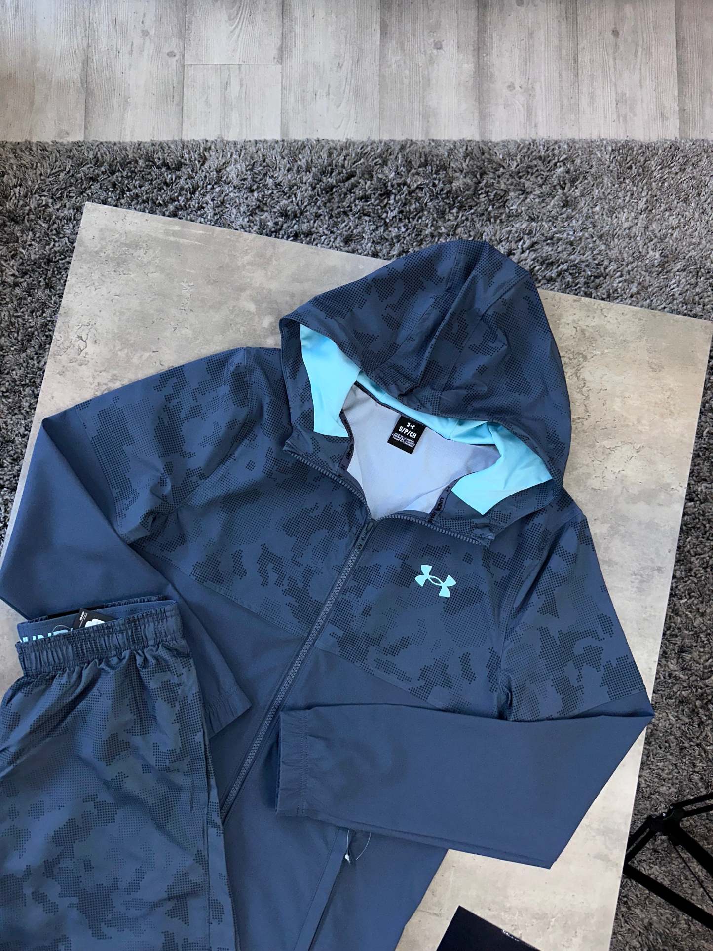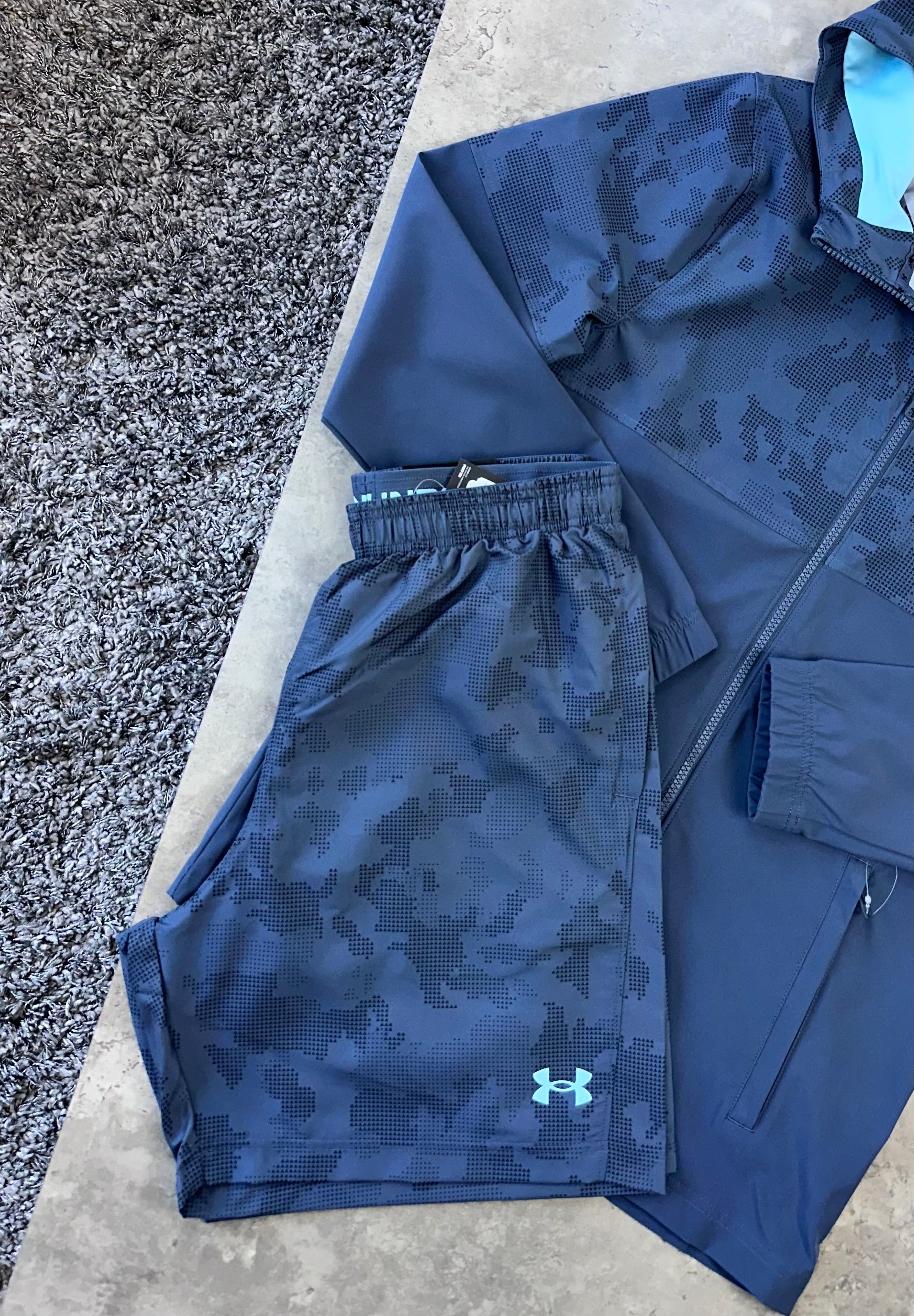 Stay comfortable and stylish with the UNDER ARMOUR VANISH CAMO SET. The lightweight woven fabric of the jacket and sweat-wicking material of the shorts provide total comfort. Customize your coverage with the full-zip fastening and toggle-adjustable hood, while stash pockets hold your essentials. Complete with Under Armour branding for a touch of style.