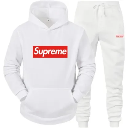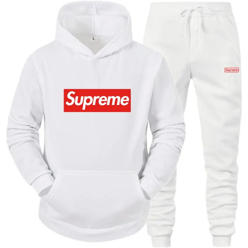 We are Supreme Clothing. Our White Supreme Tracksuit delivers a clean, bold look with all-day comfort. This Supreme tracksuit set includes a smooth zip-up jacket and relaxed tracksuit bottoms. The fresh white color stands out while keeping your style sharp. Our Supreme tracksuit pants move easy and feel soft on every step. Whether you’re in the city or at home, this Supreme tracksuit fits the vibe. It’s made for those who like to keep it fresh and simple. Try the White Supreme Tracksuit and make a strong style move, the Supreme way.