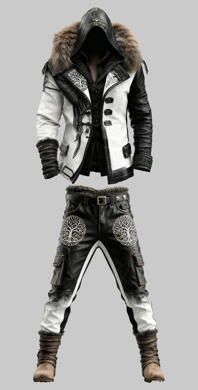 Winter Men's Fashionable Warm Leather Jacket + Leather Pants Set 4944