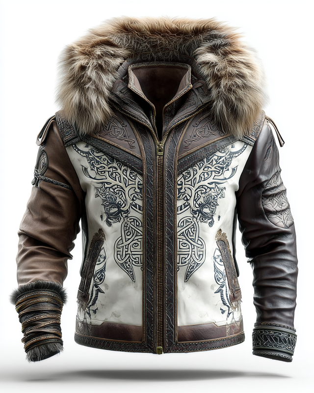 Winter Men's Hooded Fashionable Leather Warm Plush Jacket 6645