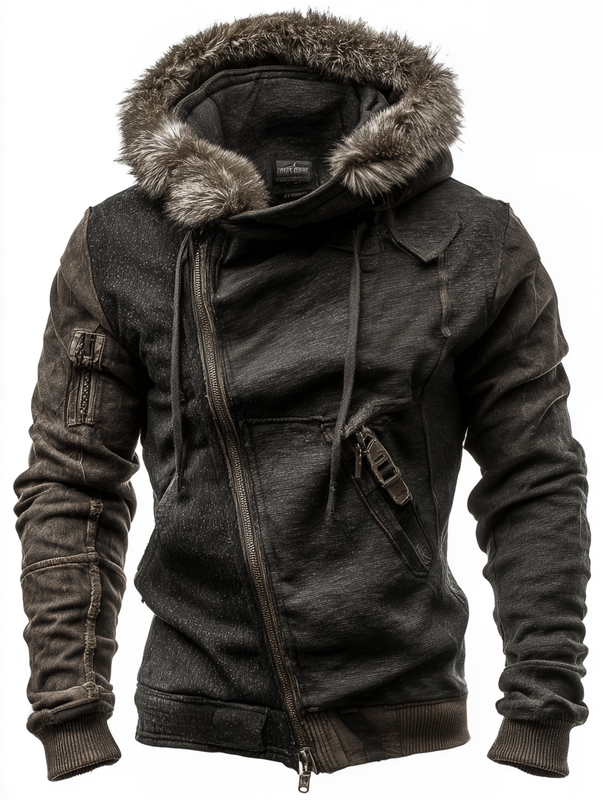 Winter Men's Hooded Fashionable Leather Warm Plush Jacket 9025