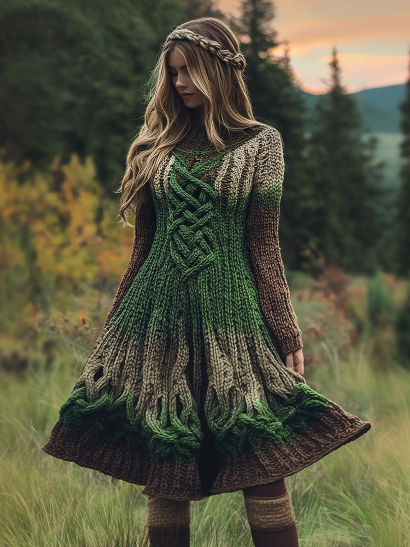 Women's Celtic Knotted Gradient Long Sleeve Sweater Dress