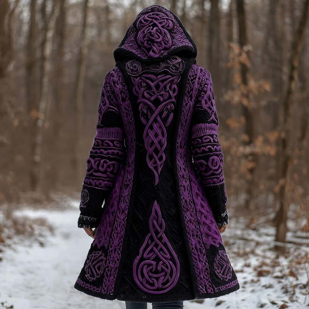 Women's Vintage Viking Celtic Knot Knit Long Sweater Jacket