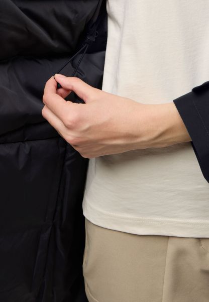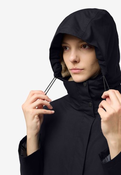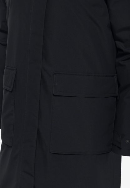Long, warm, and styled to provide maximum style along with complete warmth and weather protection, the WINTERTOR COAT features 550 fill RDS certified down filling along with a cozy and soft fleece around the collar and hood. Weather protection comes from a TEXAPORE CORE NATURE TOUCH fabric, and a button opening side hem adds extra style.