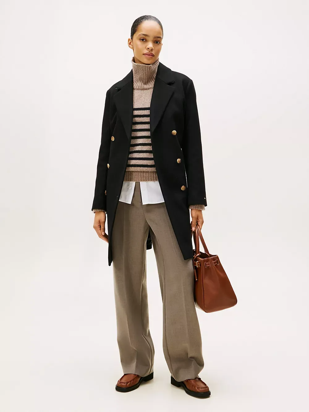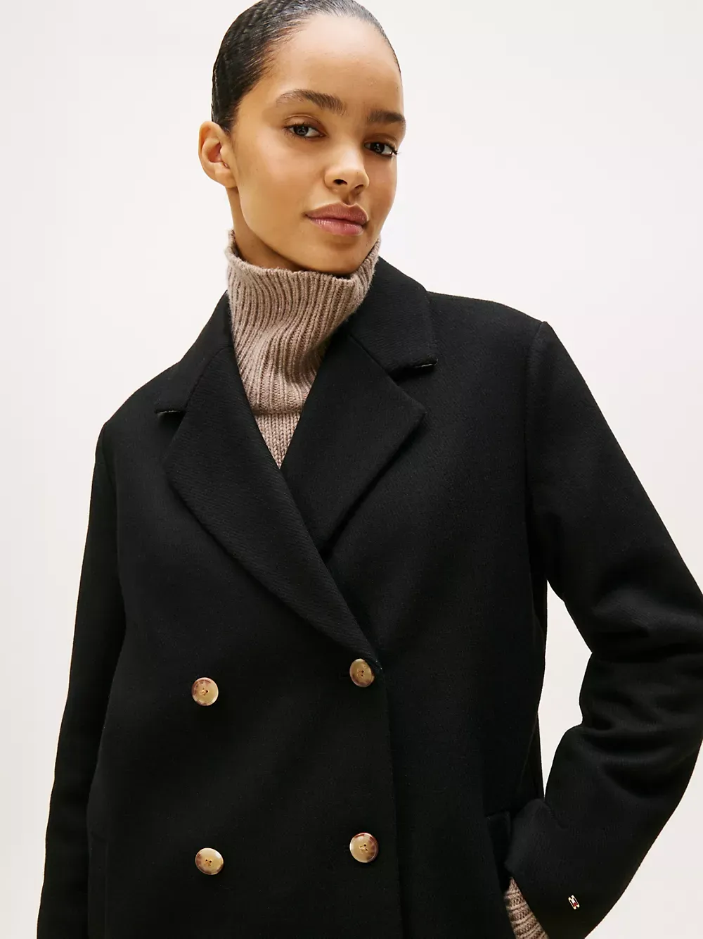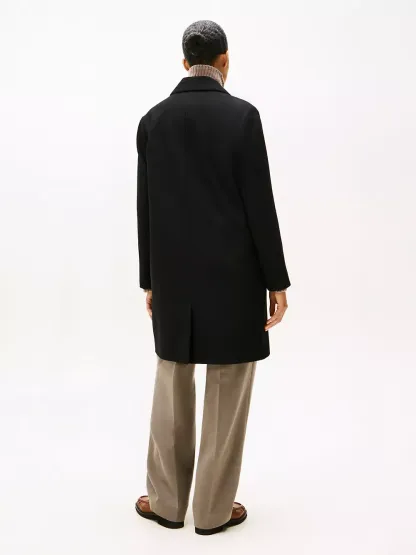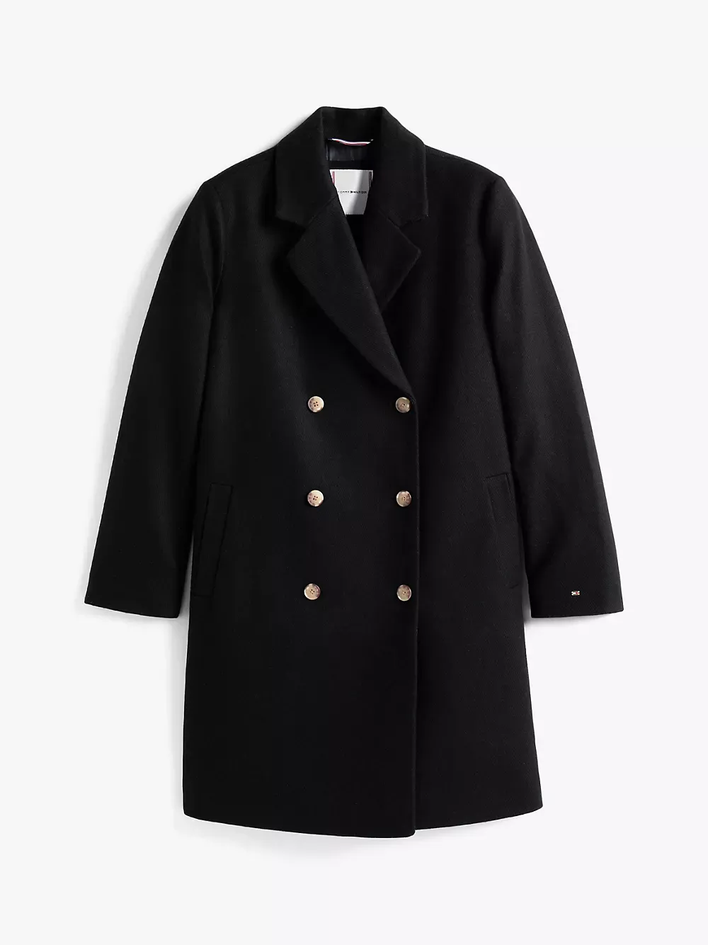Tommy Hilfiger women's coat. Our timeless double-breasted coat features oversized lapels and traditional detailing to retain a simple, classic look. This versatile outer layer is made from a toasty wool-blend, so you'll feel warm without the bulk.