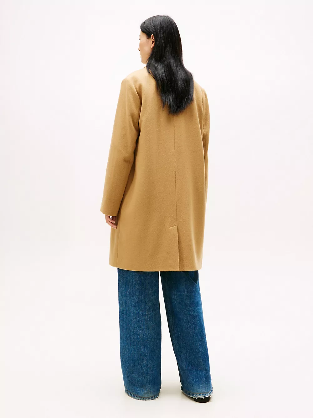 Tommy Hilfiger women's coat. Our timeless double-breasted coat features oversized lapels and traditional detailing to retain a simple, classic look. This versatile outer layer is made from a toasty wool-blend, so you'll feel warm without the bulk.
